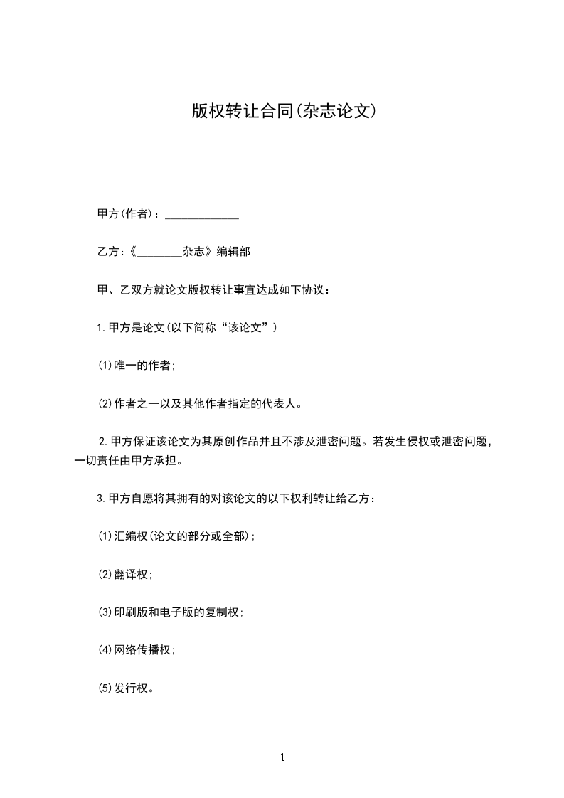 甲方(代表):乙方:《________杂志》编辑部乙方代表: