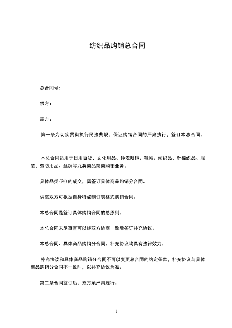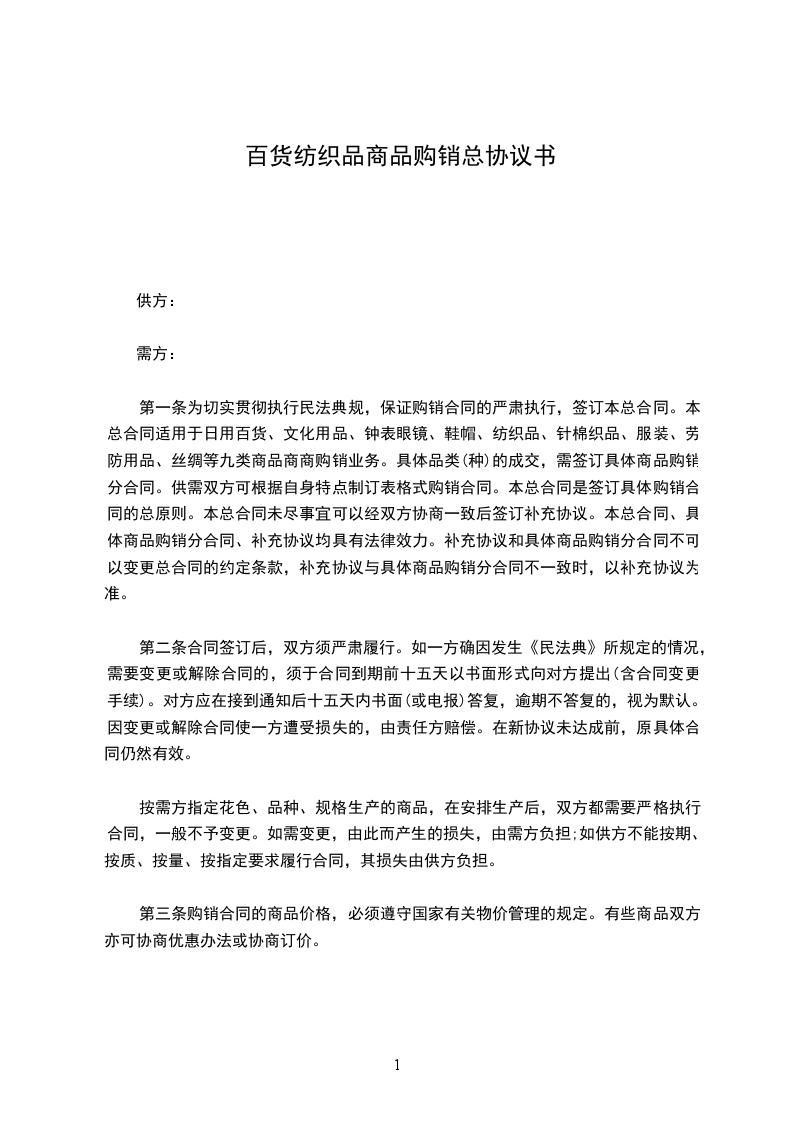 第一条为切实贯彻执行民法典规,保证购销合同的严肃执行,签订本总合同。