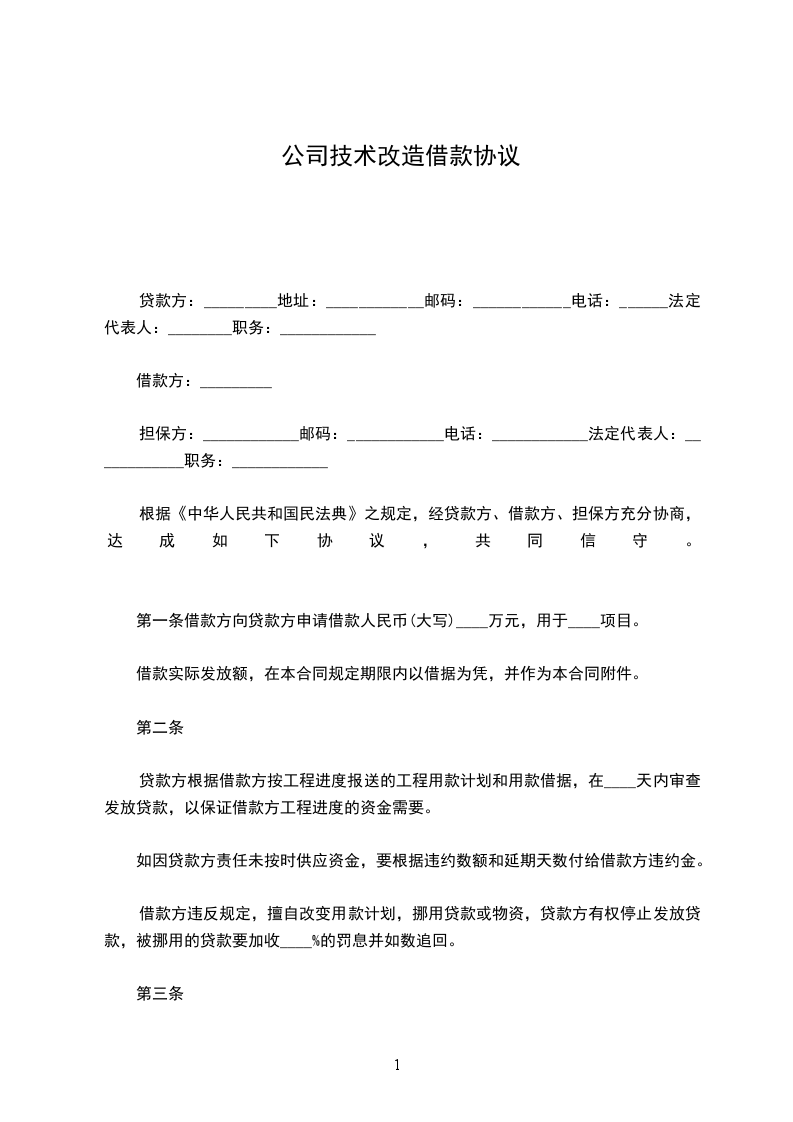第一条借款方向贷款方申请借款人民币(大写)____万元,用于____项目。