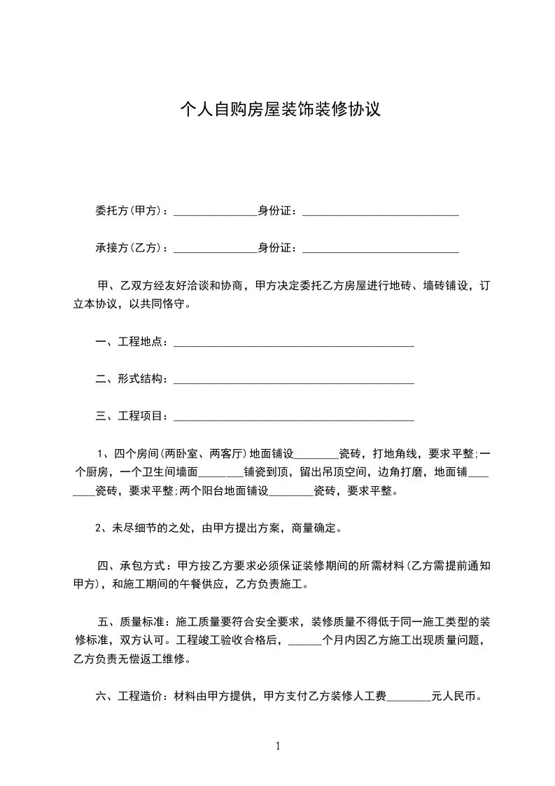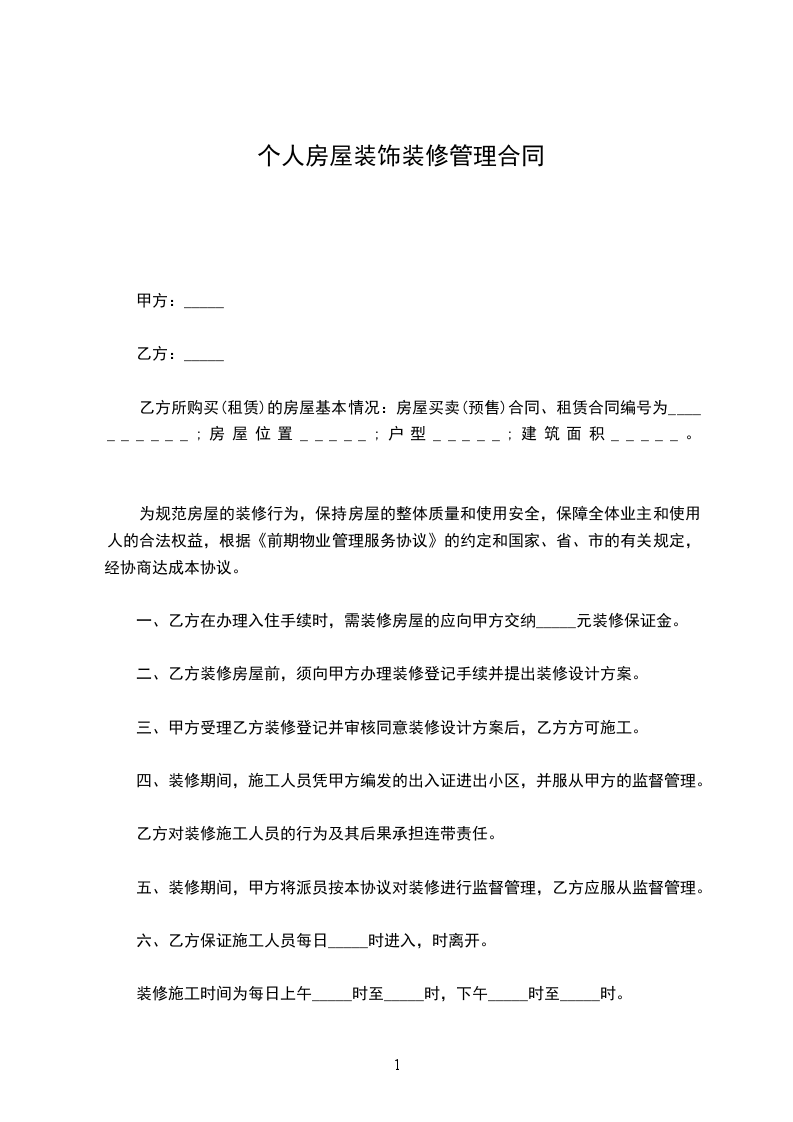 四、装修期间,施工人员凭甲方编发的出入证进出小区,并服从甲方的监督管理。