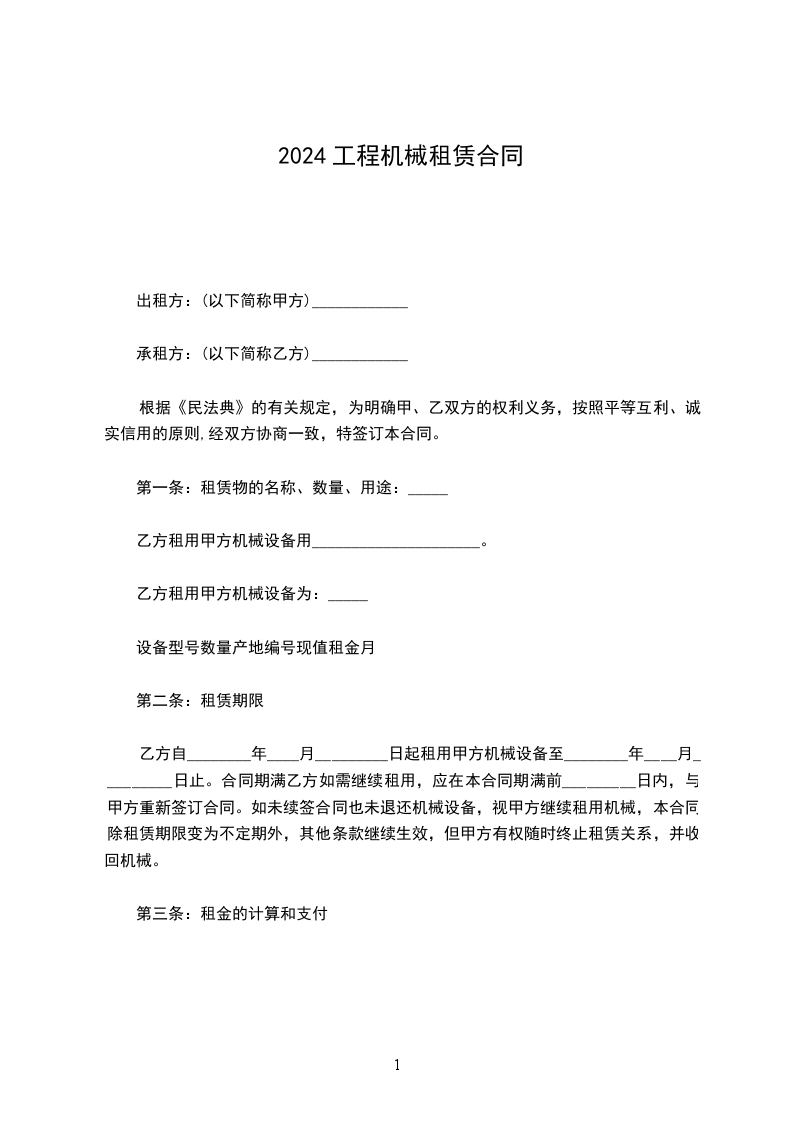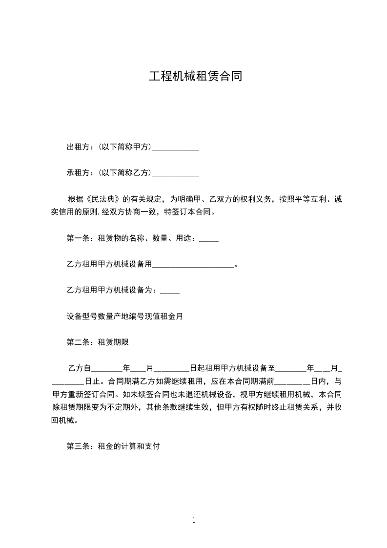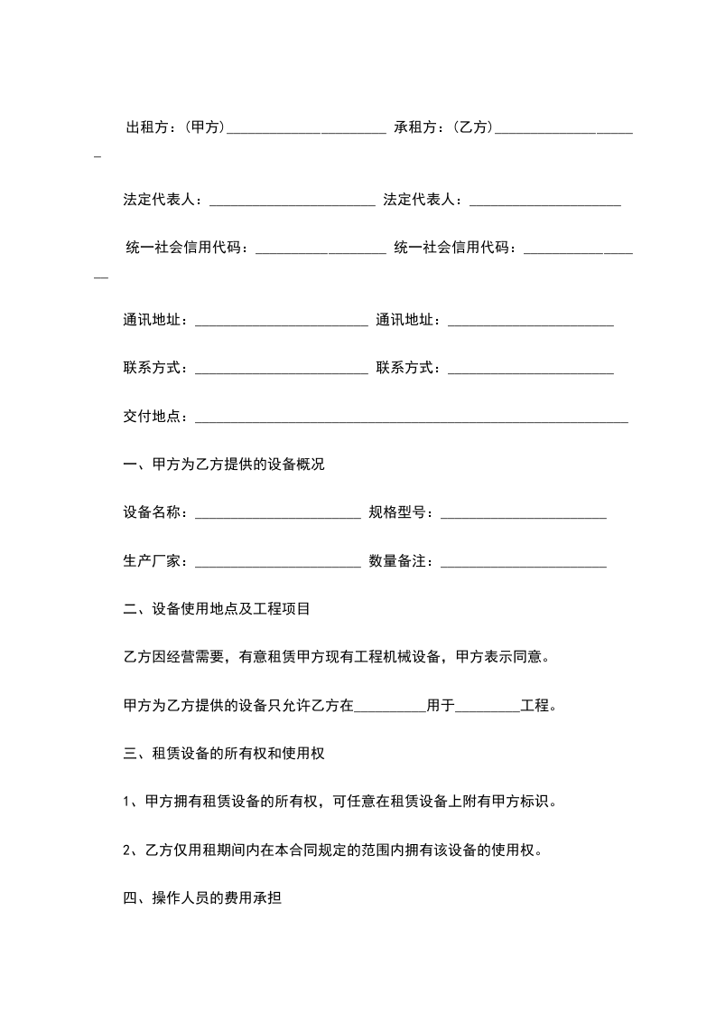 2、设备的租赁费用按月租结算,确定人民币_______元/月,租赁期间每月工作时间不得超过_______小时,超出部分视为加班,按超出工作小时数计收加班租赁费。