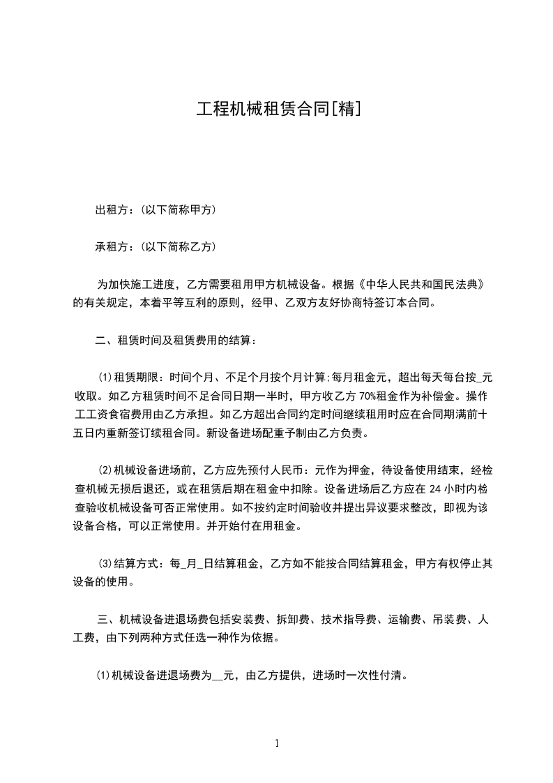 1、乙方应承担租赁设备的进场费用______元,租赁时间不足叁个月,乙方承担设备的退场费用______元,租赁时间超过叁个月,退场费用由甲方承担。