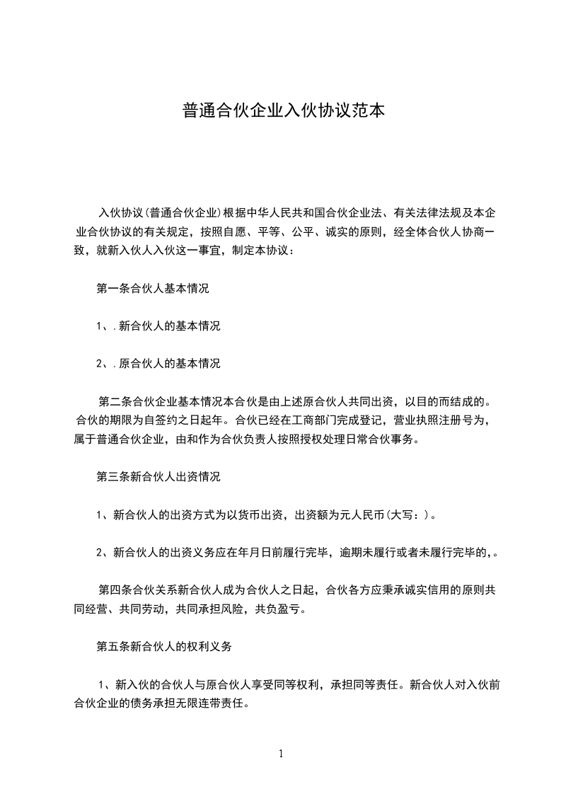 - 乙方入伙后,即成为合伙企业的合伙人,与其他合伙人享有同等权利,承担同等责任。