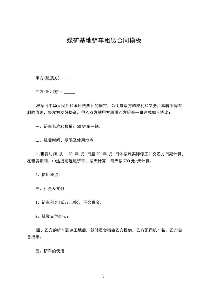 十、铲车租赁合同一式份,甲方执份,乙方执份。
