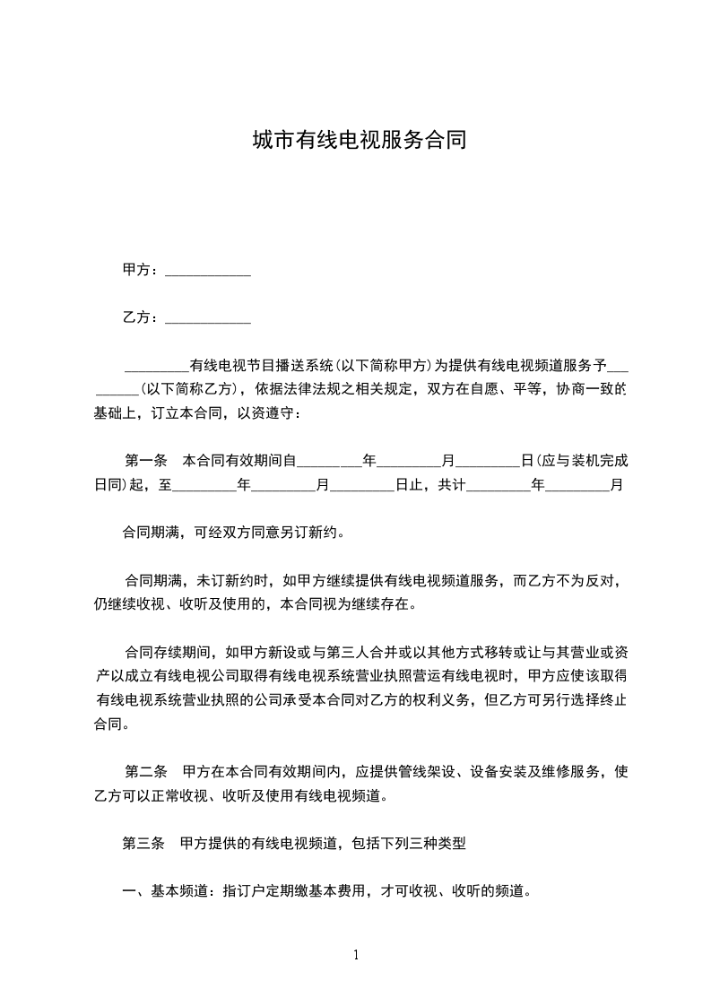 5、为保证有线电视系统的正常运行,甲方必须到乙方处购买楼内有线电视器件箱,乙方负责终身维护。