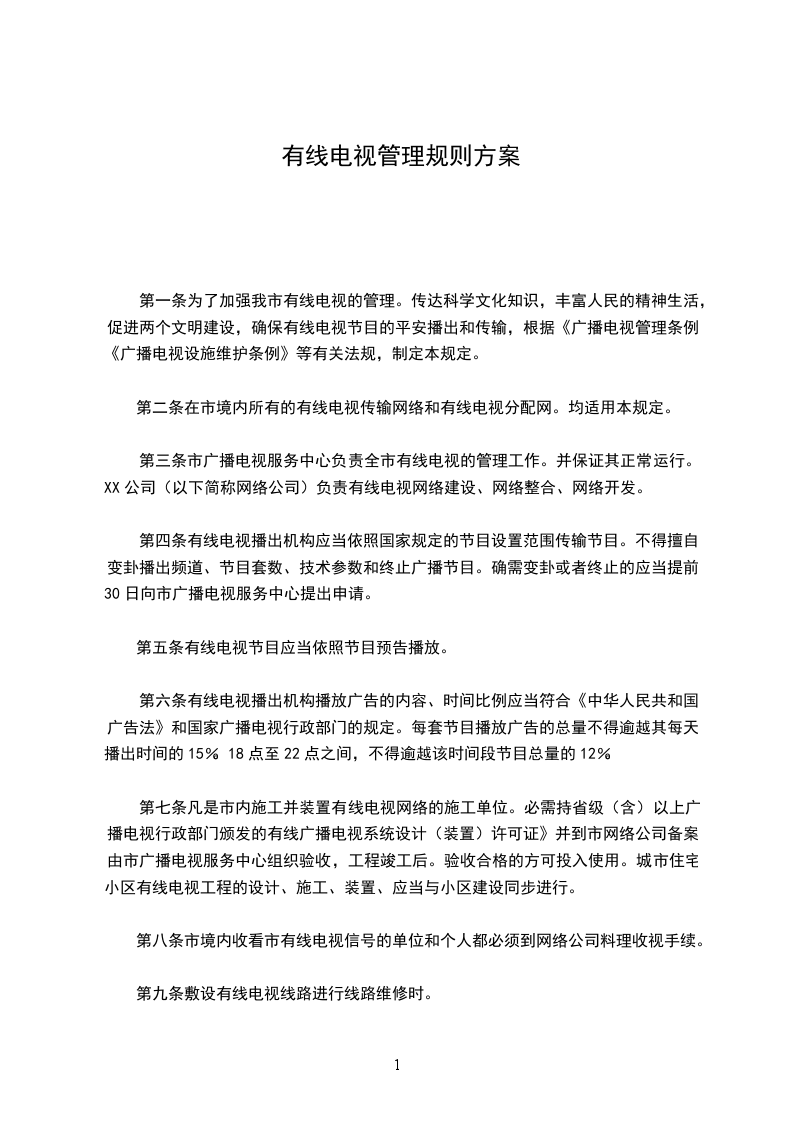 7、在乙方工程完成后,甲方应承担有线电视设备及线路的保管任务。