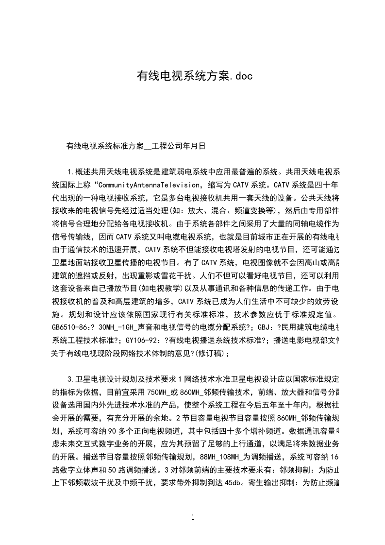 施工内容:需乙方逐户进行有线电视系统的设计、安装、调试及交付使用后的维护任务。