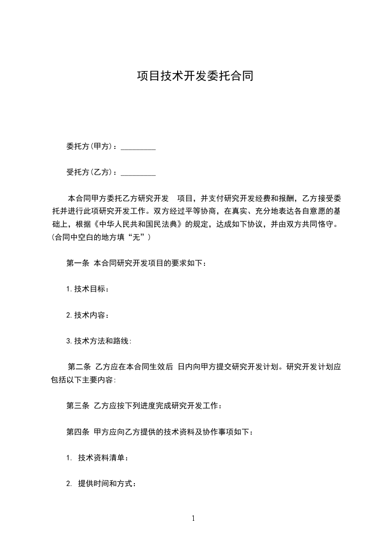 (一)本项目报酬:_________元。
