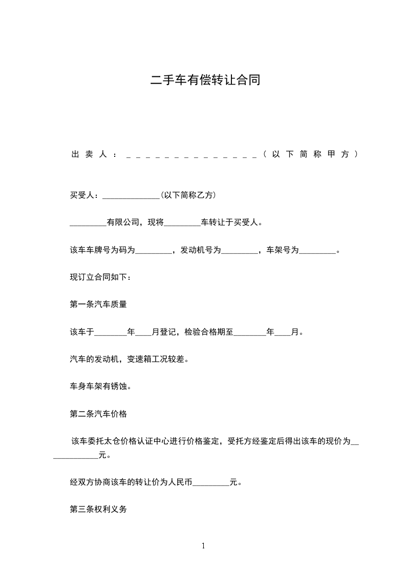 _________有限公司,现将_________车转让于买受人。