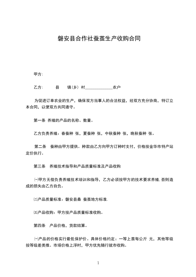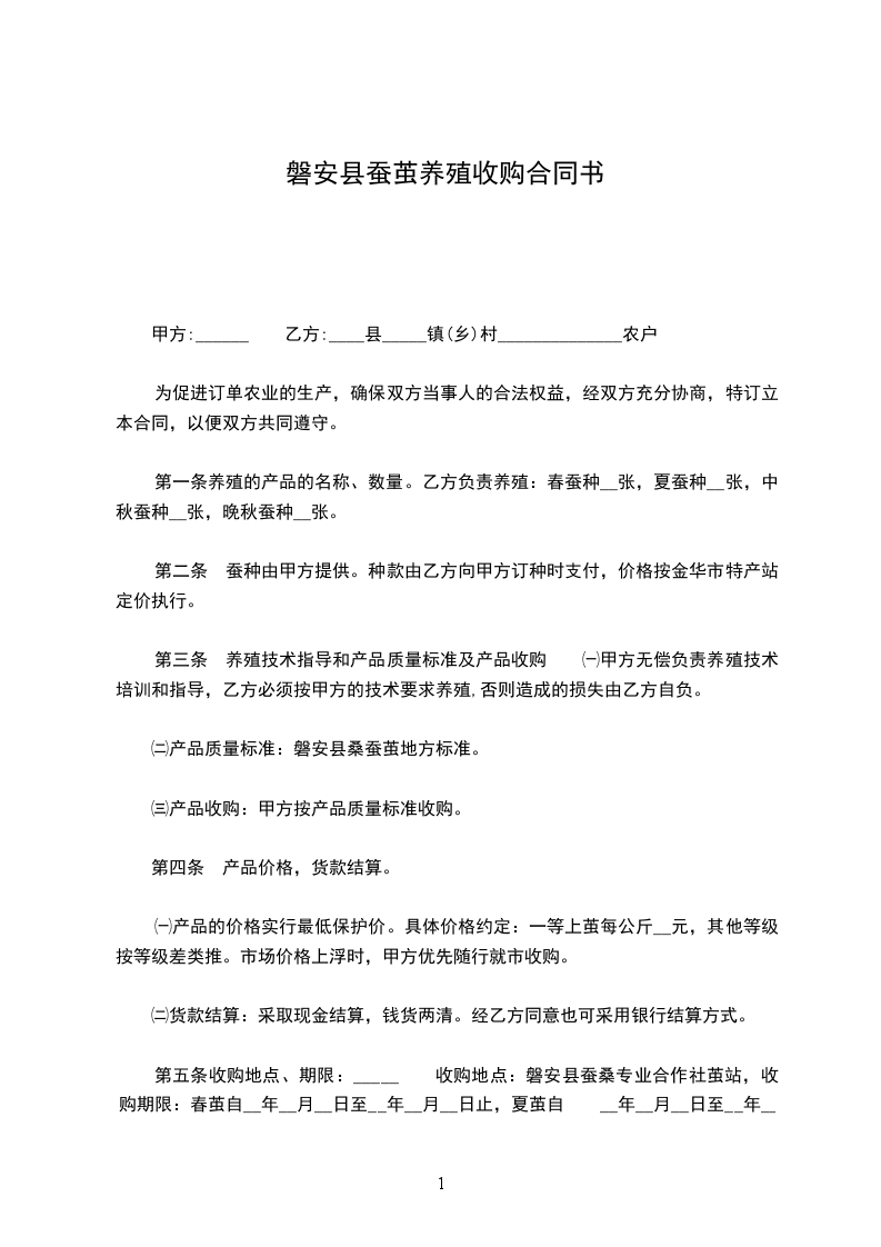 第五条收购地点、期限:_____ 收购地点:磐安县蚕桑专业合作社茧站,收购期限:春茧自__年__月__日至__年__月__日止,夏茧自 __年__月__日至__年__月__日止,中秋茧自__年__月__日至__年__月___日止,晚秋茧自__年__月__日至__年__ 月__日止。