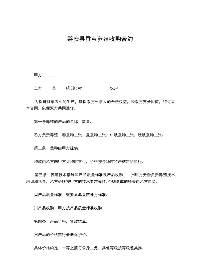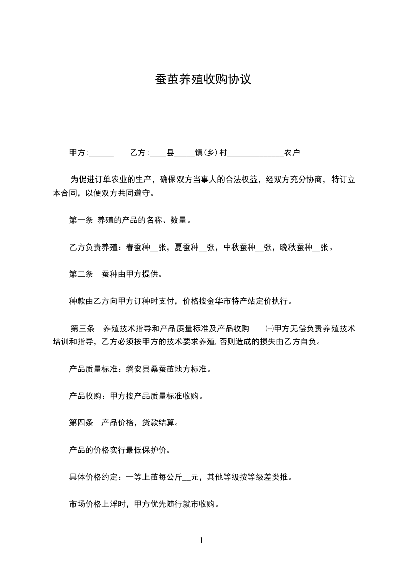 第一条养殖的产品的名称、数量。乙方负责养殖:春蚕种__张,夏蚕种__张,中秋蚕种__张,晚秋蚕种__张。