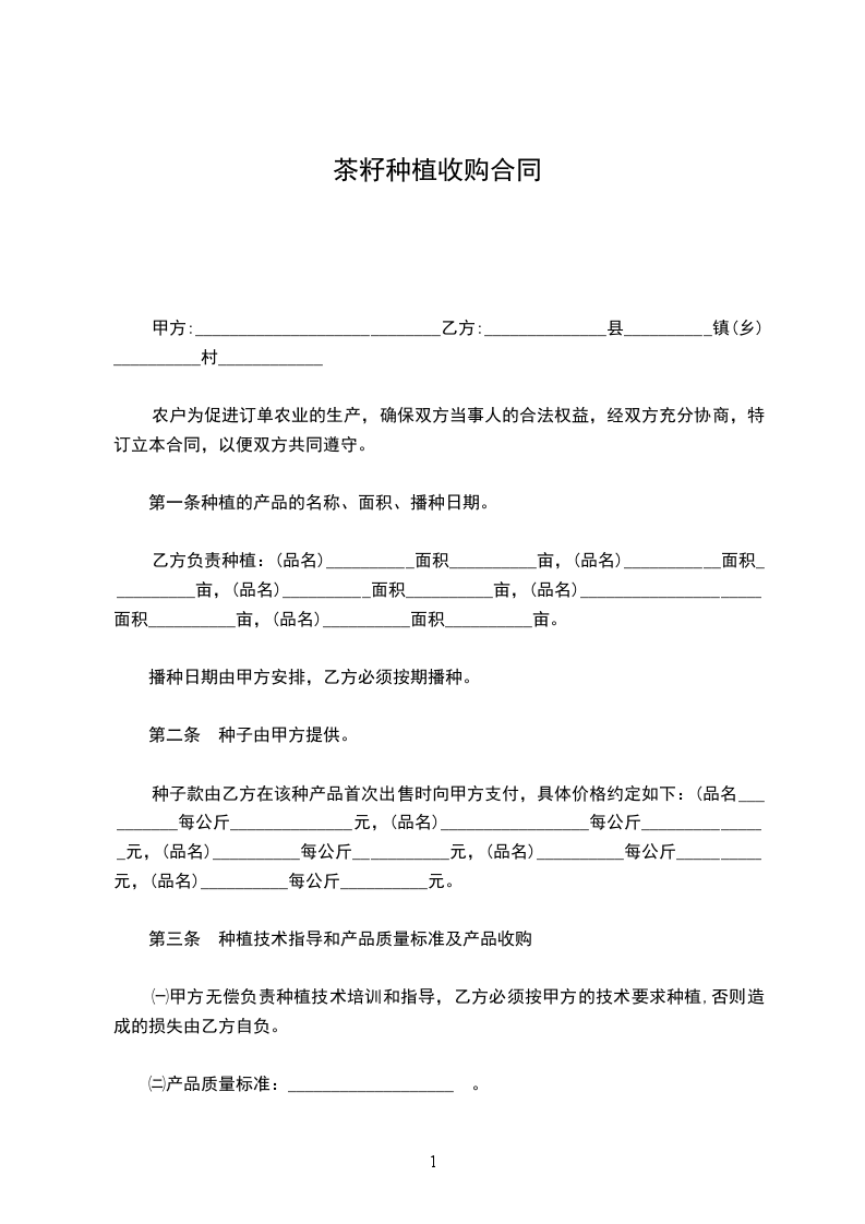 ㈢产品收购:甲方按产品质量标准收购,不合格产品不予收购或议价收购。