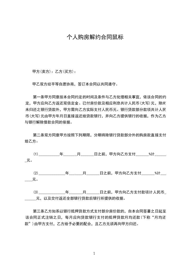 第一条甲方同意按本合同约定的时间及条件与乙方处理相关事宜,依该合同的约定,甲方应向乙方返还双倍定金、已付房价款及相应利息共计人民币(大写)元,除尚未归还之银行贷款外,甲方需向乙方实际支付人民币_____元。银行贷款部分款项共计人民币(大写)元由甲方_____年_____月_____日直接返还给贷款银行,并向乙方提供银行的收据,作为乙方与银行解除借款合同的依据。