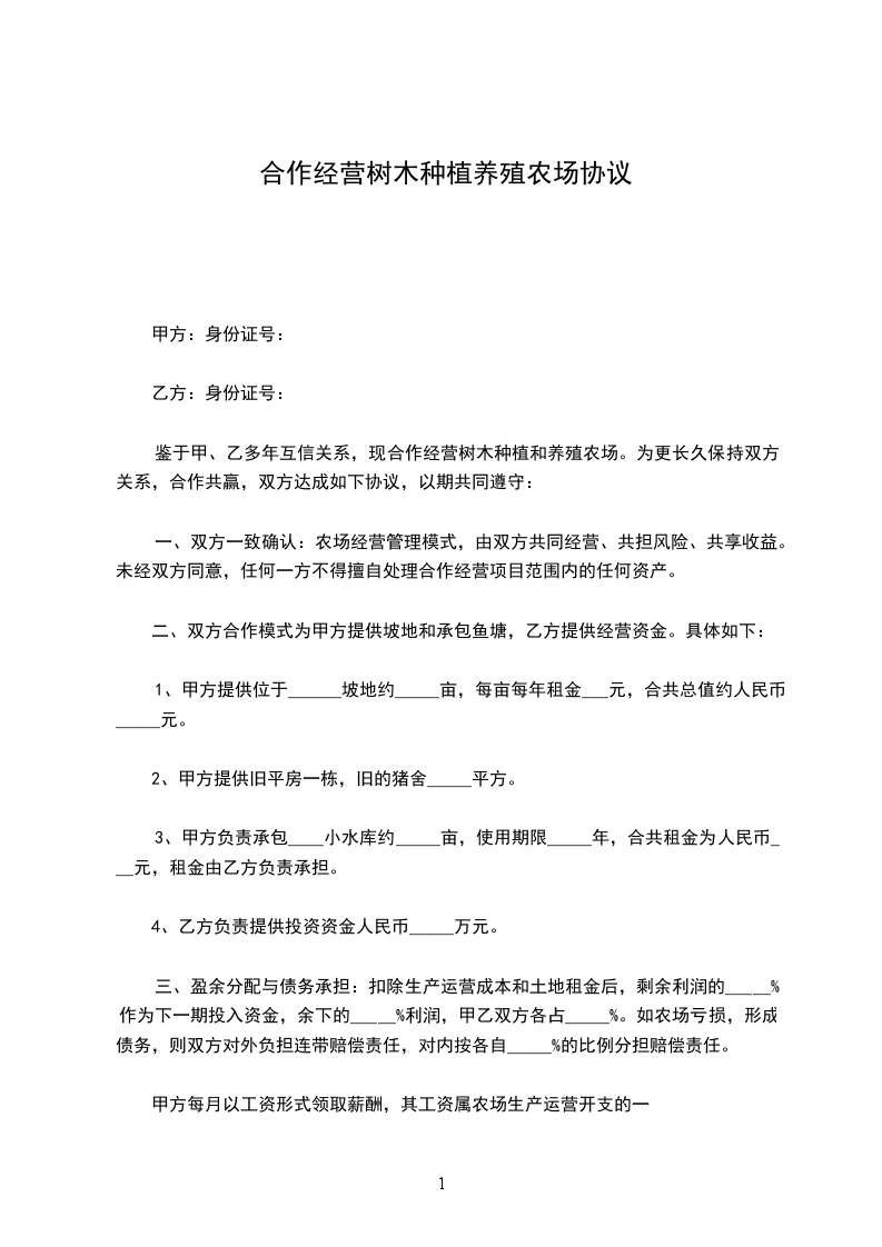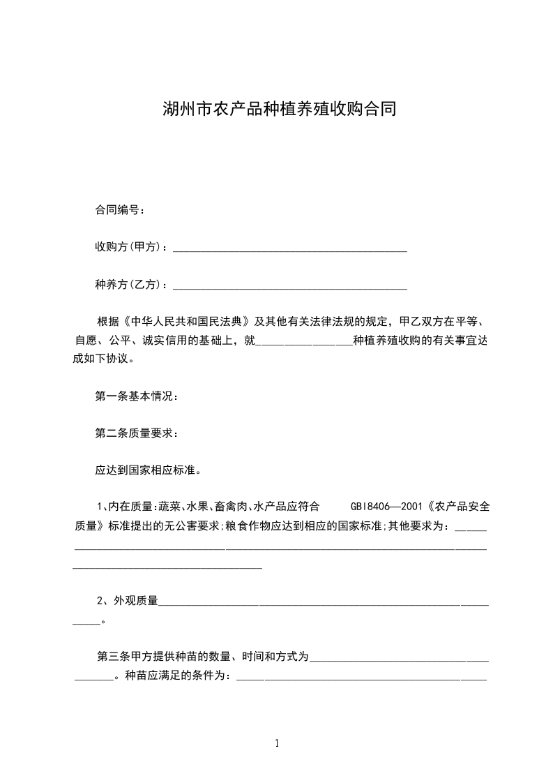 根据《中华人民共和国民法典》及其他有关法律法规的规定,甲乙双方在平等、自愿、公平、诚实信用的基础上,就_________________种植养殖收购的有关事宜达成如下协议。