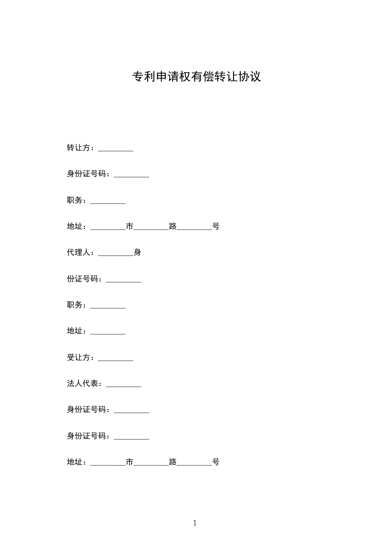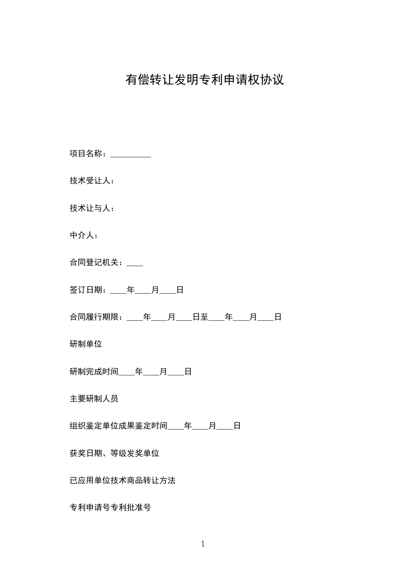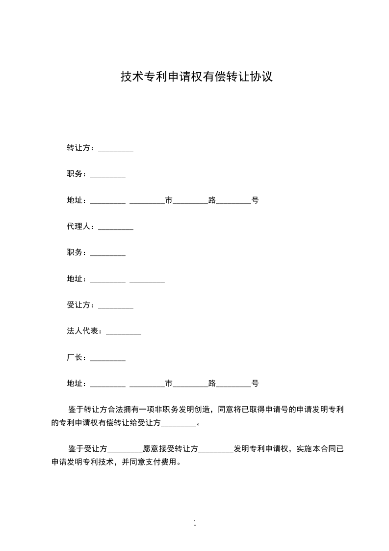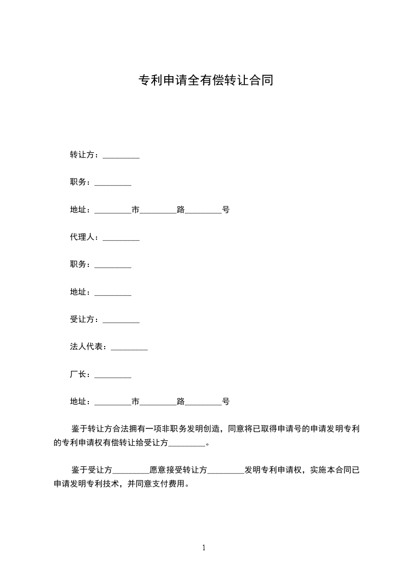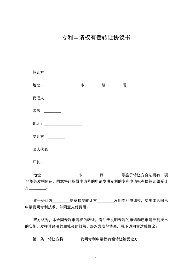 第一条转让方将_________发明专利申请权有偿转让给受让方。