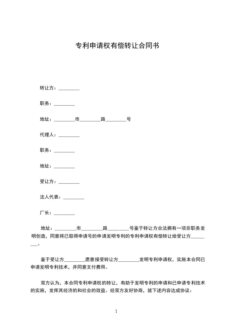 鉴于受让方_________愿意接受转让方_________发明专利申请权,实施本合同已申请发明专利技术,并同意支付费用。