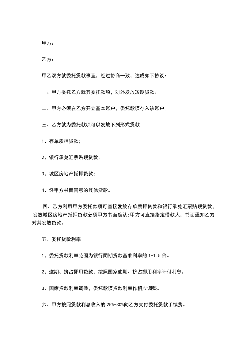 六、甲方按照贷款利息收入的25%-30%向乙方支付委托贷款手续费。