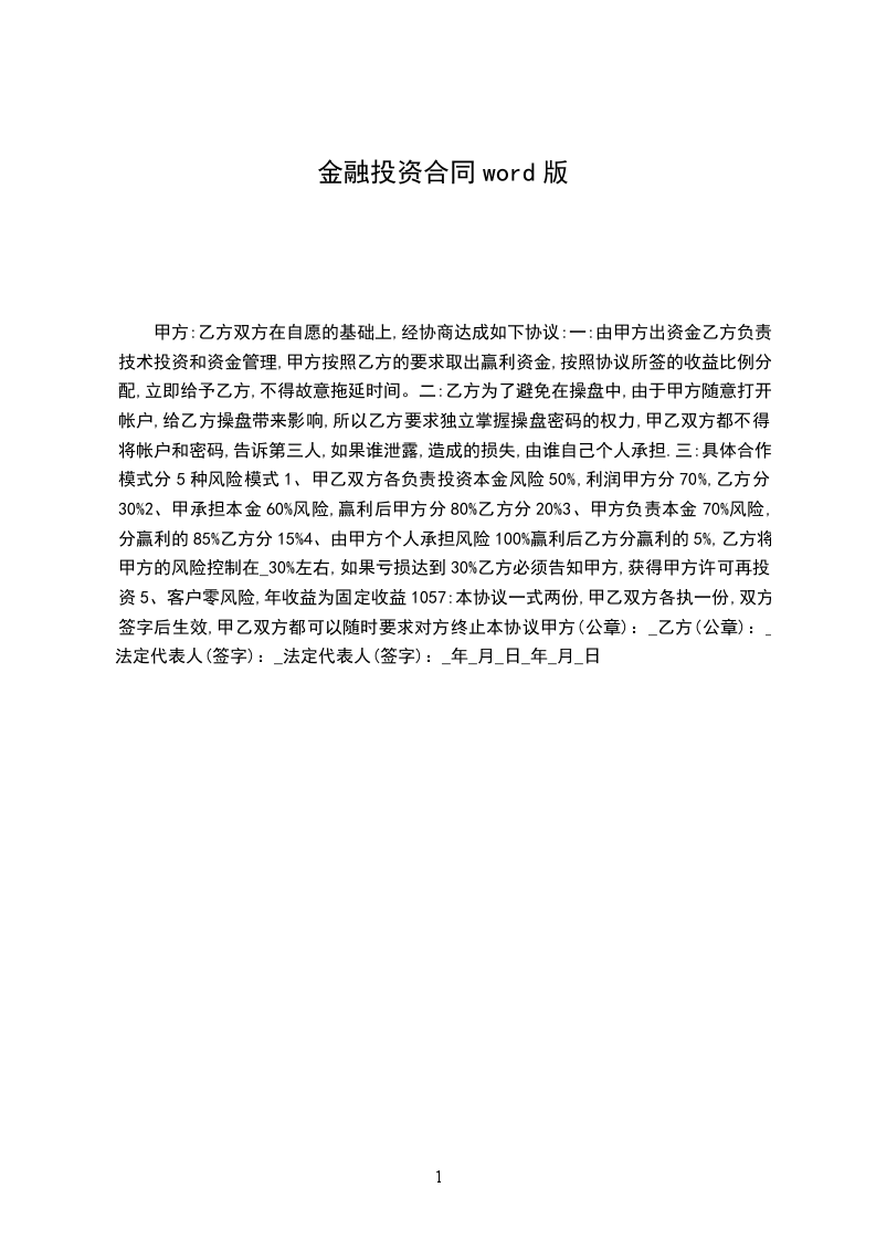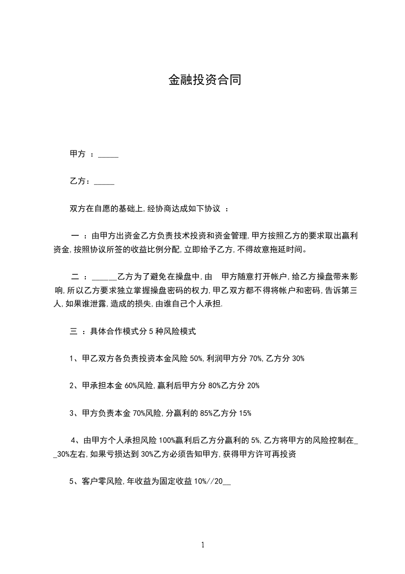 鉴于甲方拟对乙方进行金融投资(以下简称“投资”),双方经友好协商,达成如下对赌协议: