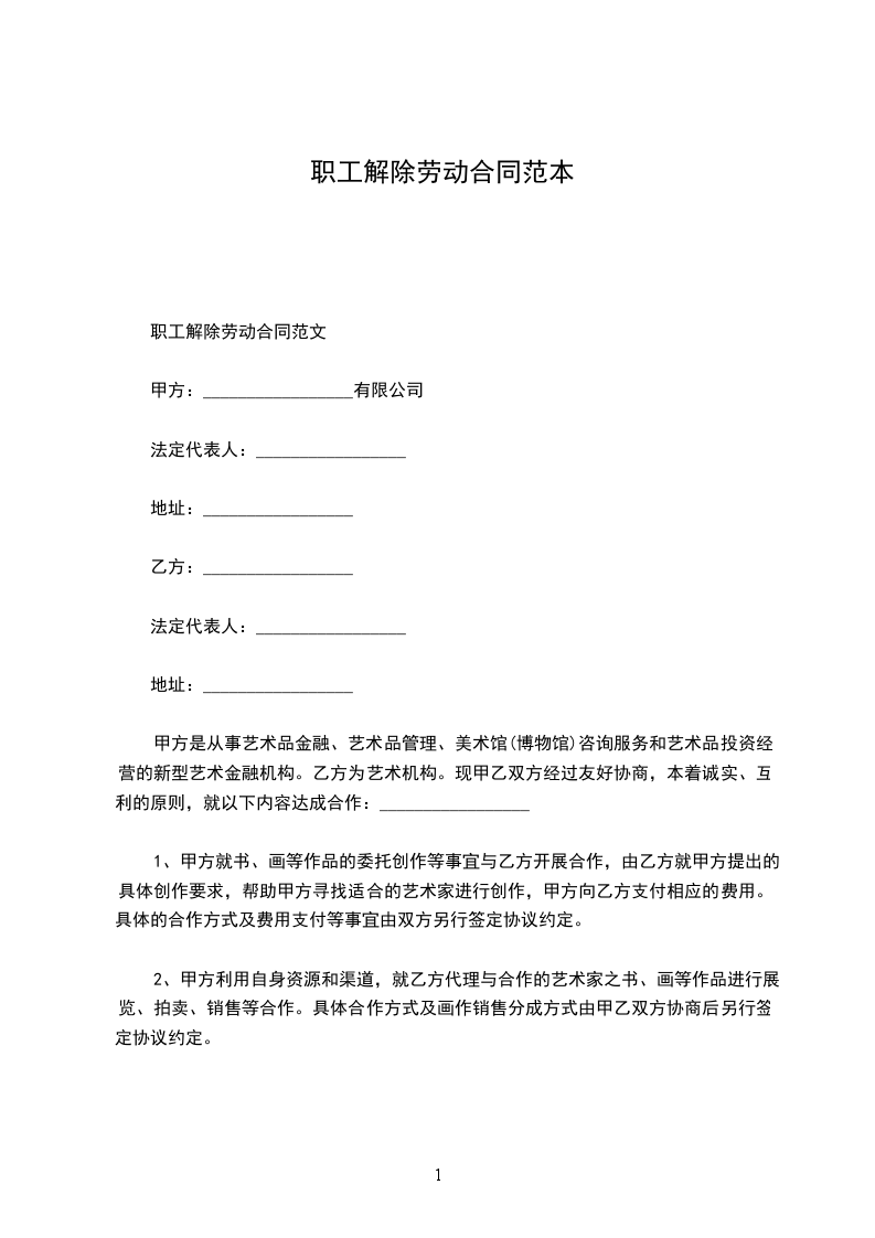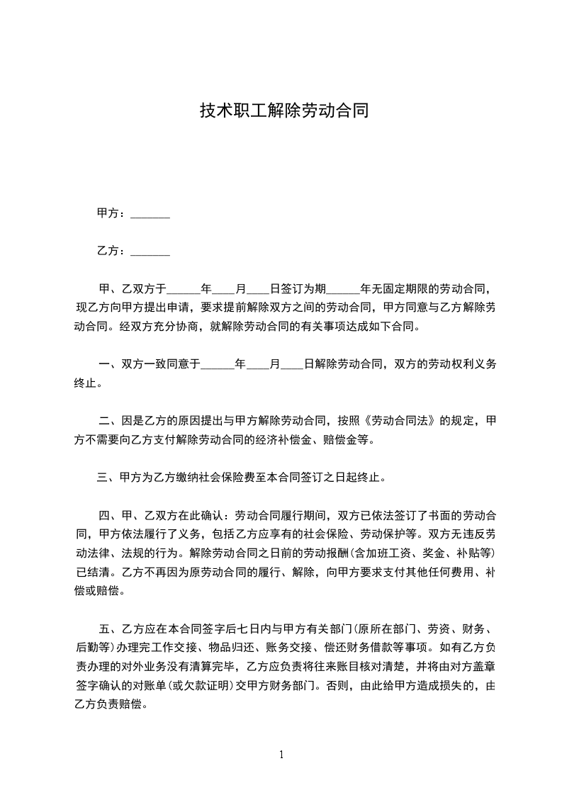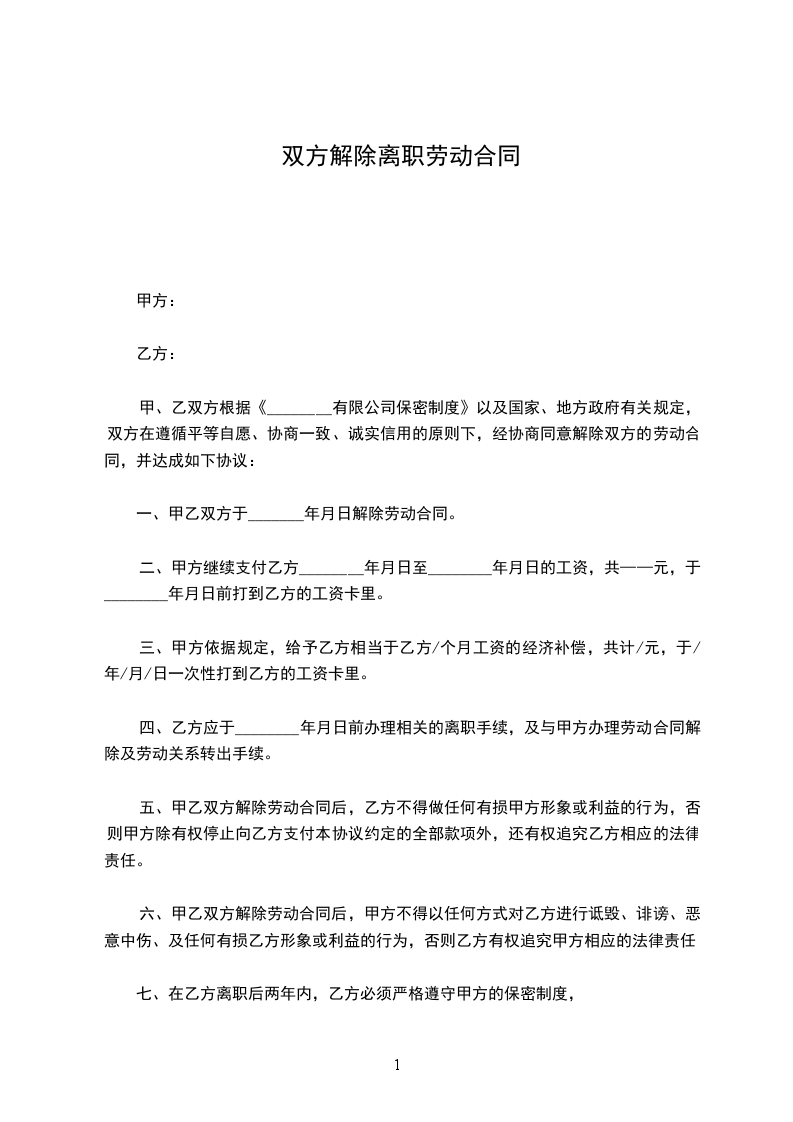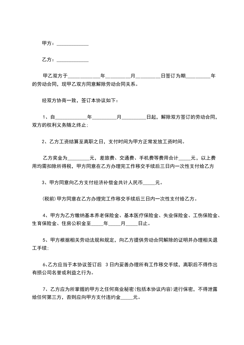 1、自_____________年__________月__________日起,解除双方签订的劳动合同,双方的权利义务随之终止;