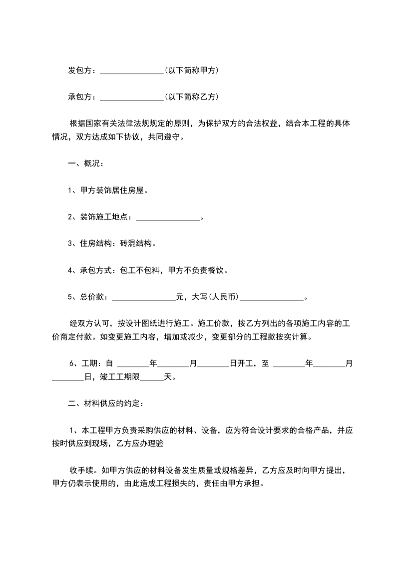 7、乙方在使用原材料时要尽量节约,物尽其用,避免浪费,损耗不超过一般同类工程标准。