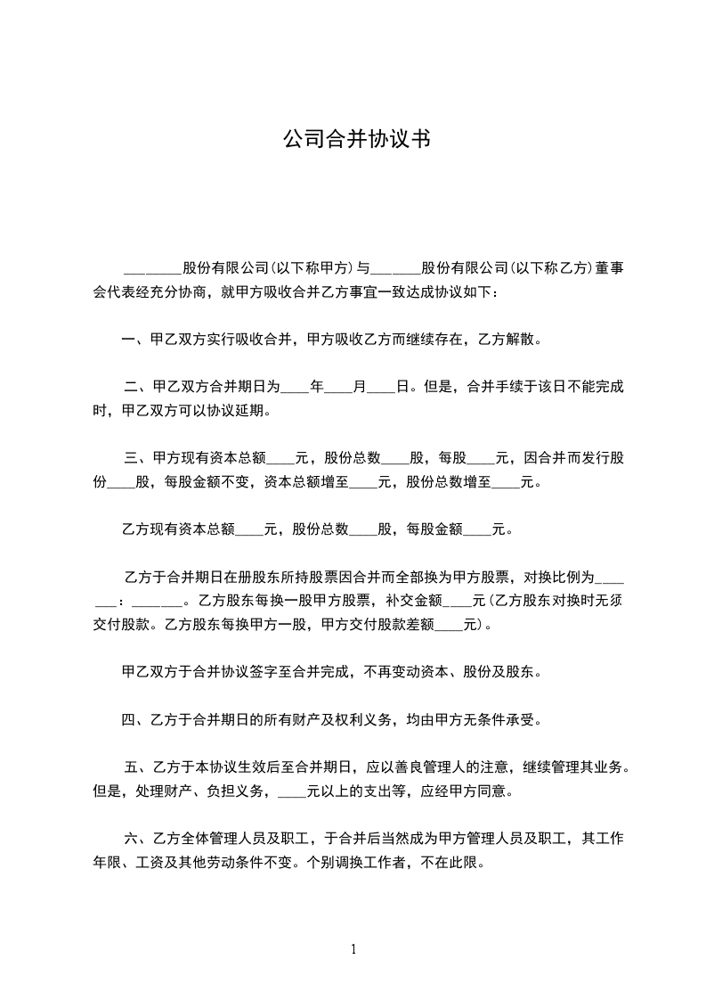 兼并方:_______________(以下简称甲方)被兼并方:_______________(以下简称乙方)