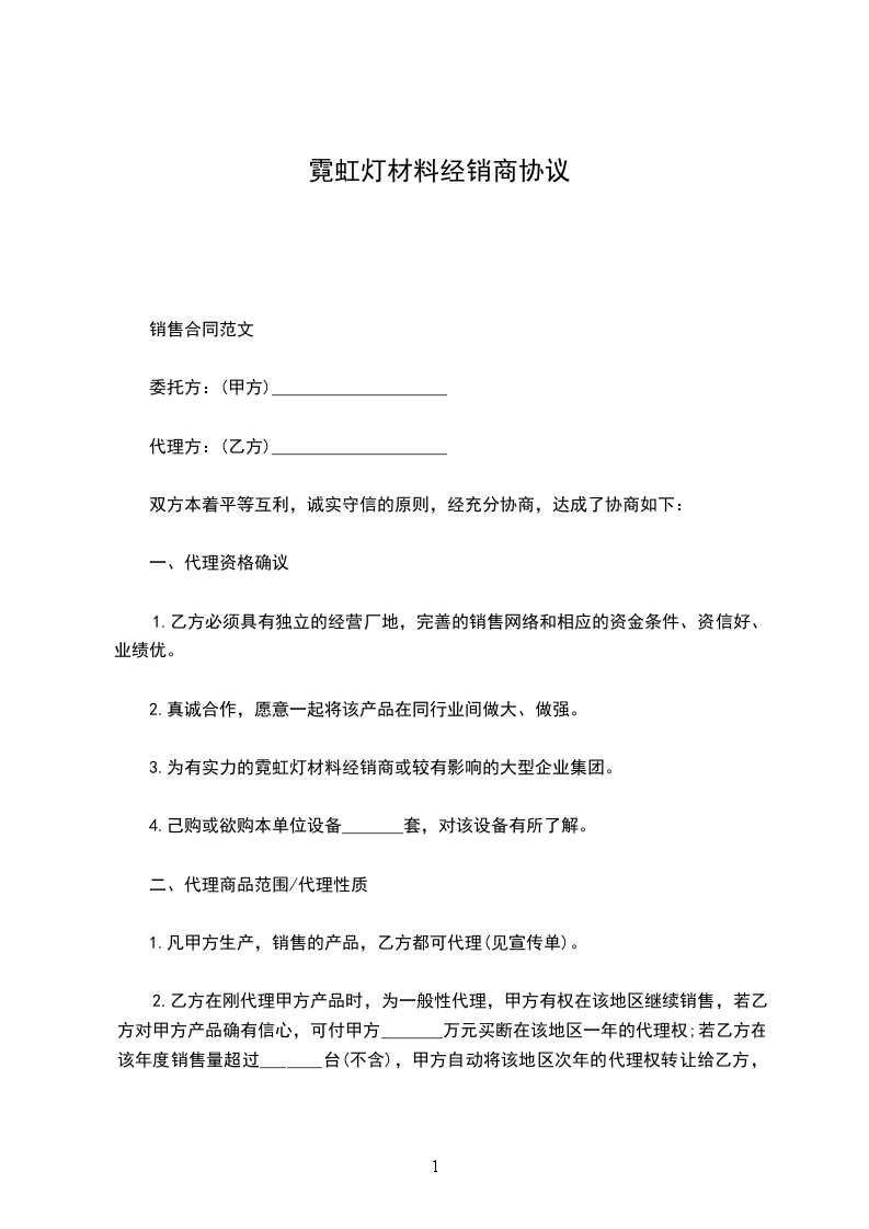 1.乙方必须具有独立的经营厂地,完善的销售网络和相应的资金条件、资信好、业绩优。