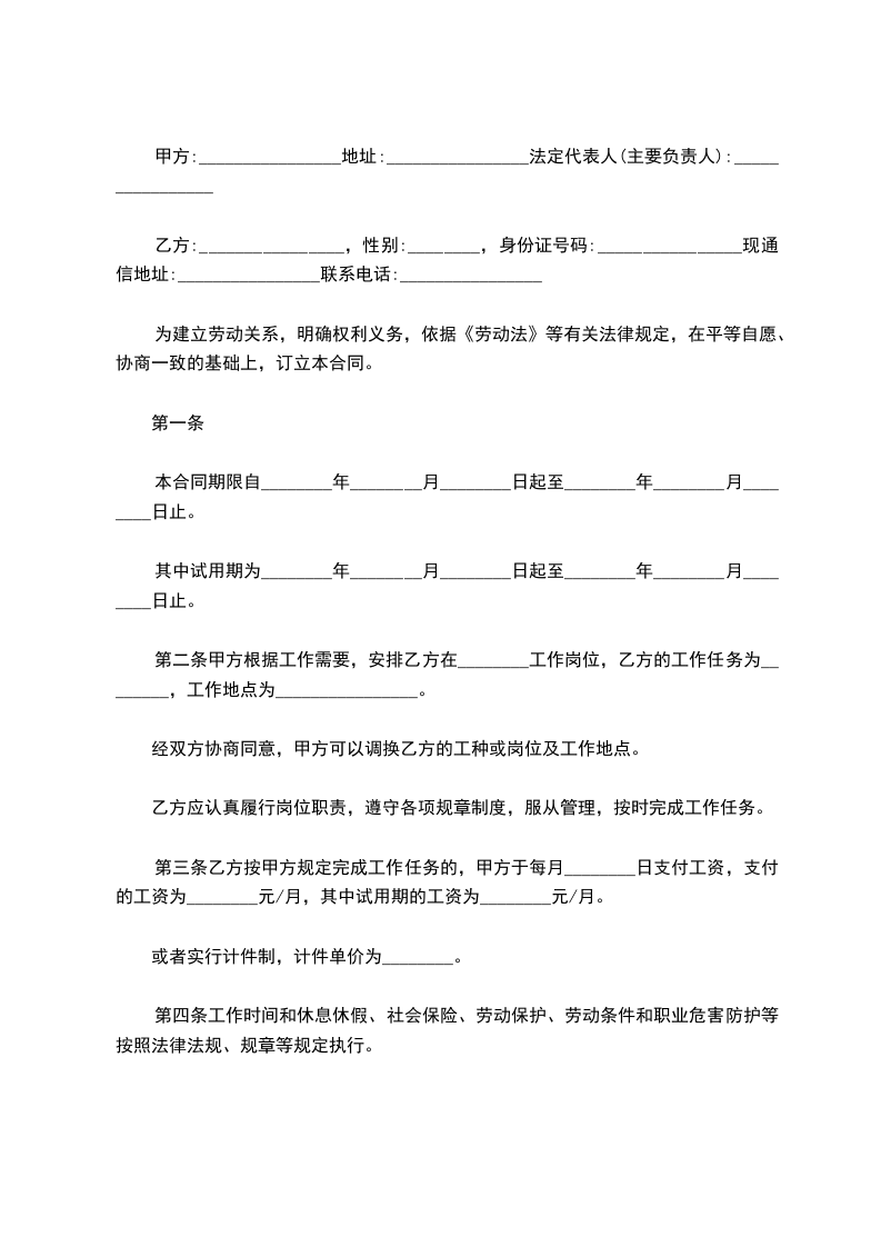 第二条甲方根据工作需要,安排乙方在________工作岗位,乙方的工作任务为________,工作地点为________________。