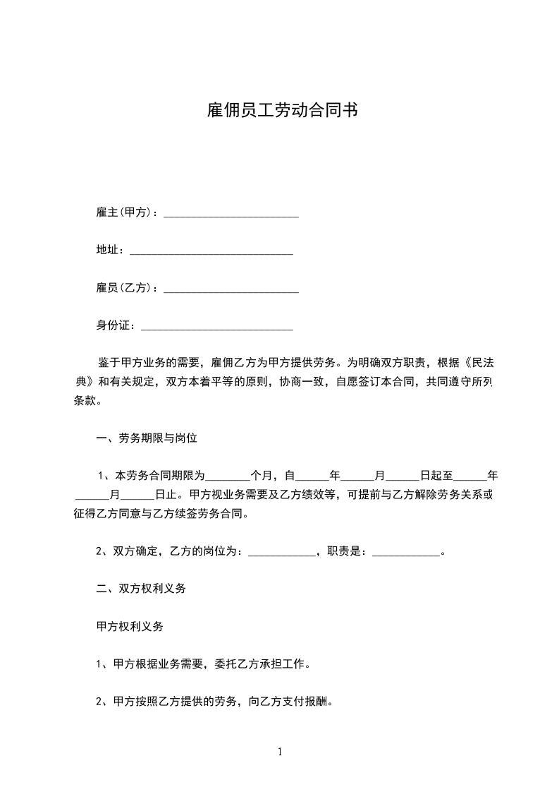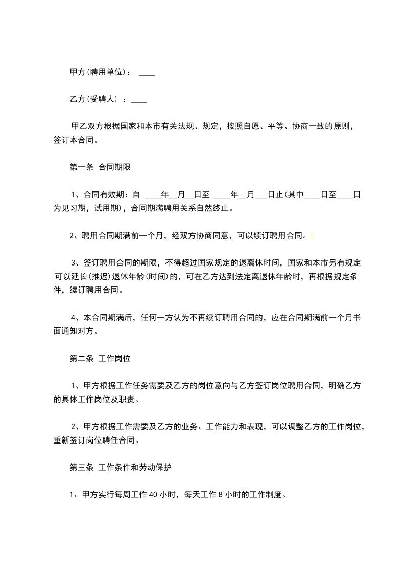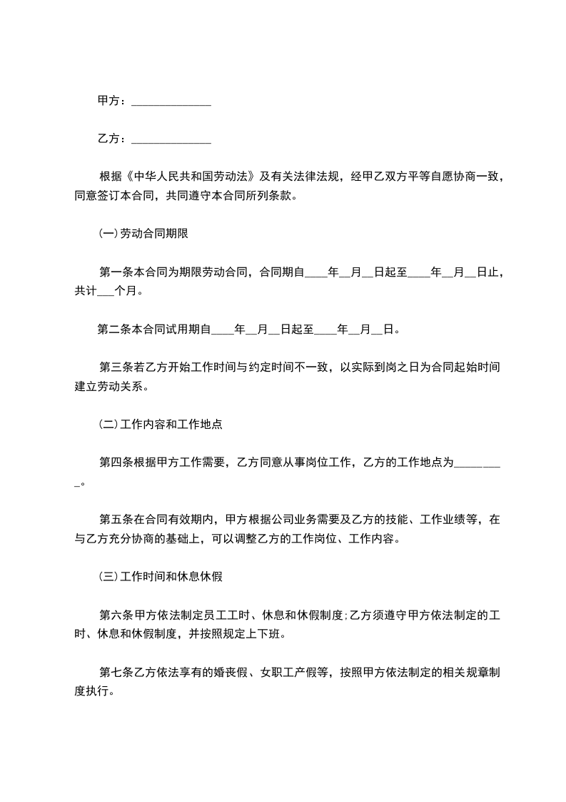 第一条本合同为期限劳动合同,合同期自____年__月__日起至____年__月__日止,共计___个月。