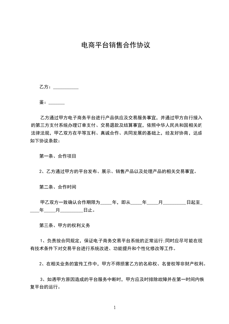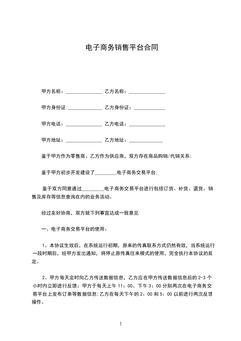 鉴于双方同意通过_________电子商务交易平台进行包括订货、补货、退货、销售及库存等信息查询在内的业务活动。