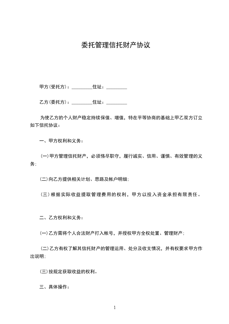 甲方向丙方办理财产信托,除确认财托字第_____号“财产信托基本协议”的各项条款外,有关财产信托的具体事项,补充订立以下条款: