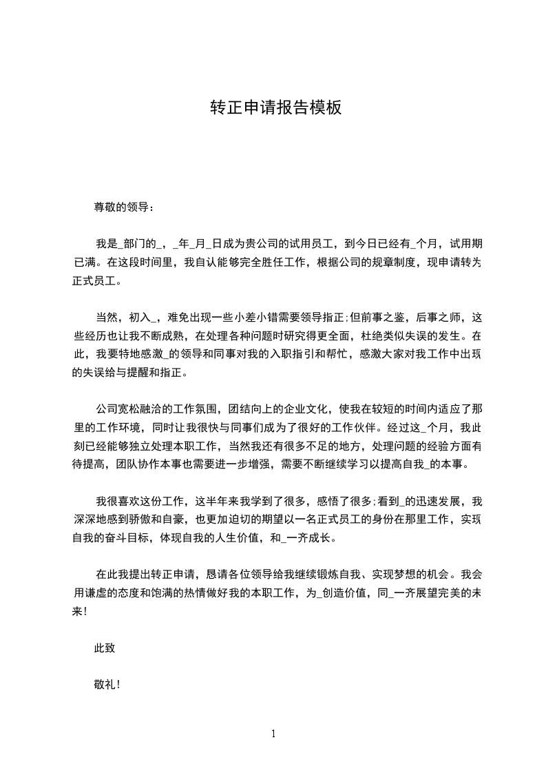 我是________部门的________,于______年_____月______日成为公司的试用员工,到今天已经有三个月,试用期已满。在这段时间里,我工作努力,表现突出,完全能够胜任工作,根据公司的规章制度,现申请转为正式员工。