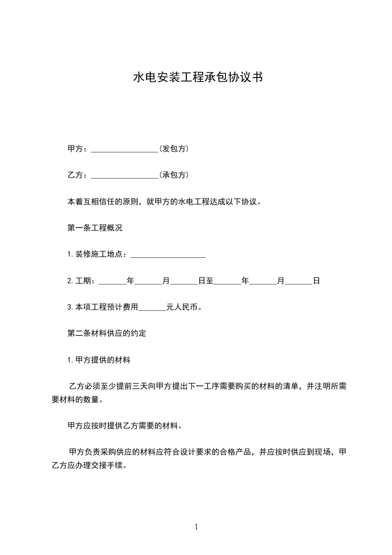 本着互相信任的原则,就甲方的水电工程达成以下协议。