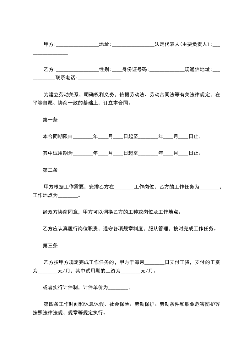 第四条工作时间和休息休假、社会保险、劳动保护、劳动条件和职业危害防护等按照法律法规、规章等规定执行。