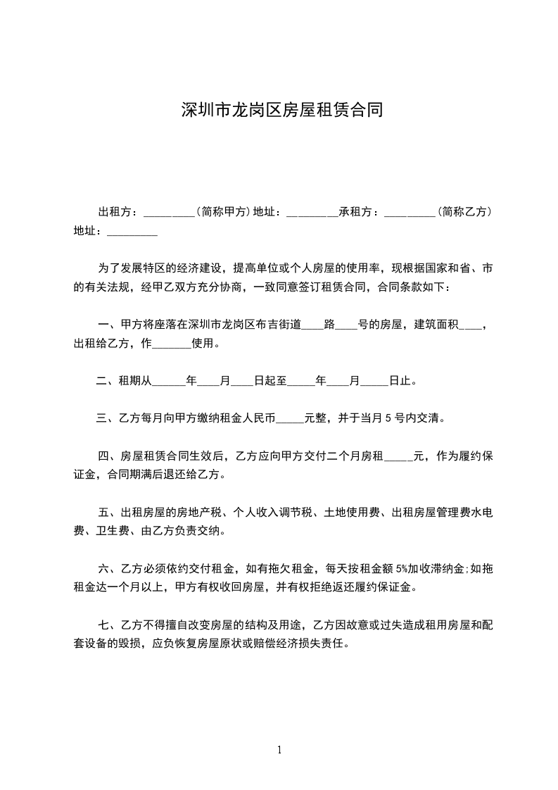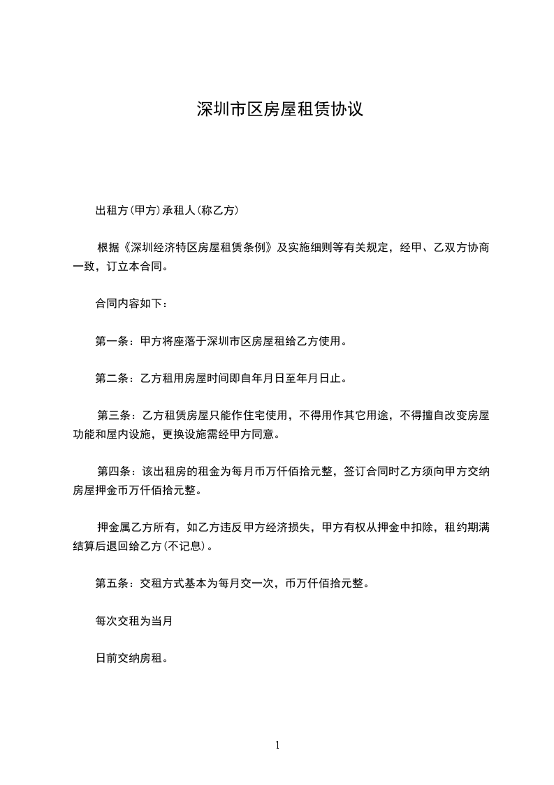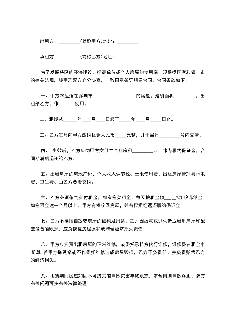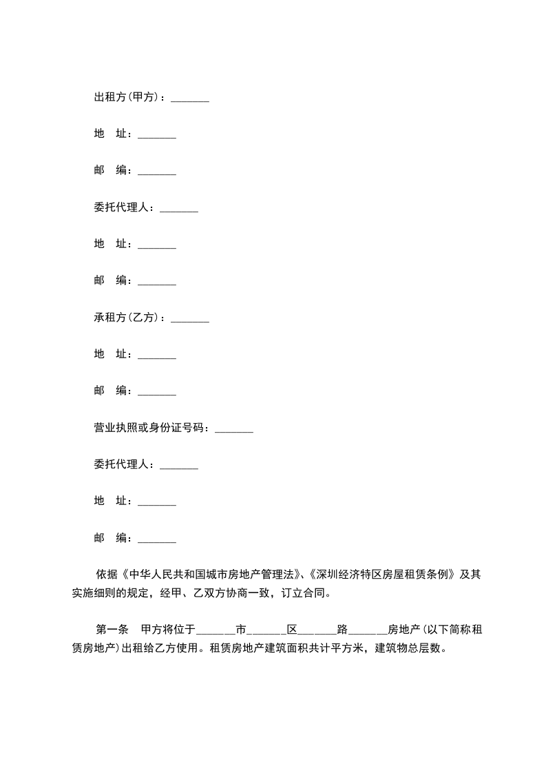 第一条:甲方将座落于深圳市区房屋租给乙方使用。
