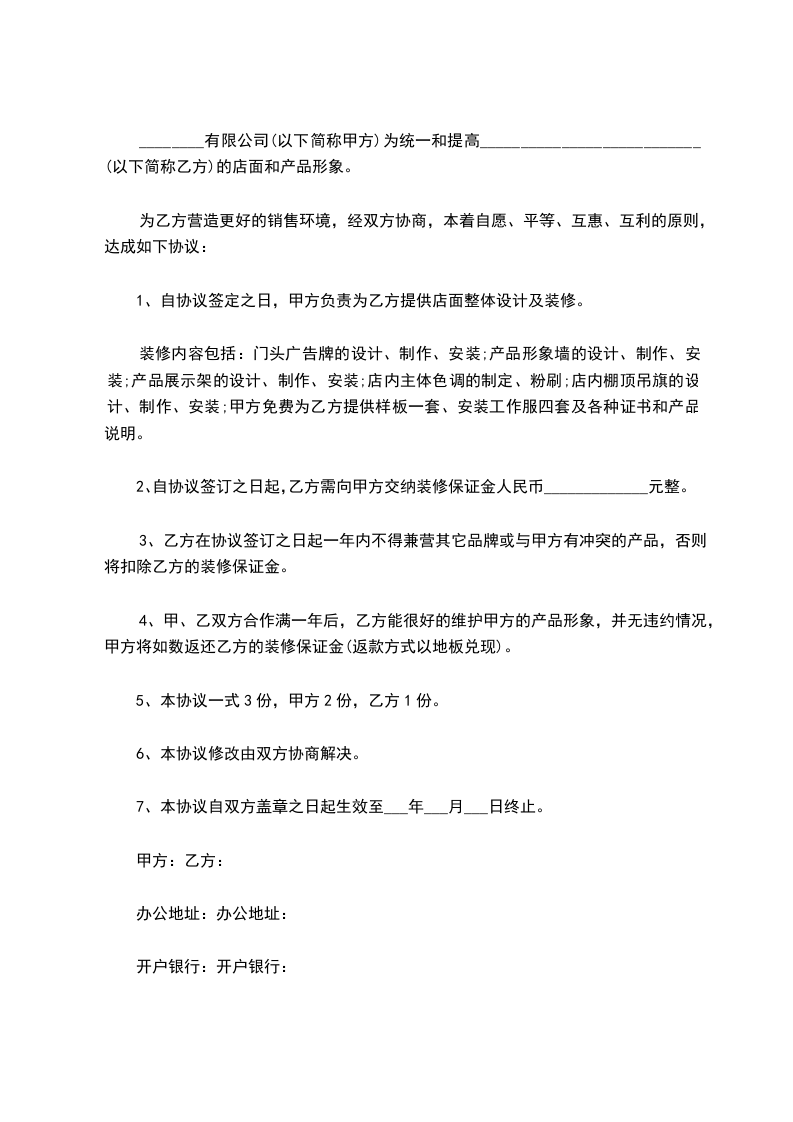 ________有限公司(以下简称甲方)为统一和提高___________________________(以下简称乙方)的店面和产品形象。
