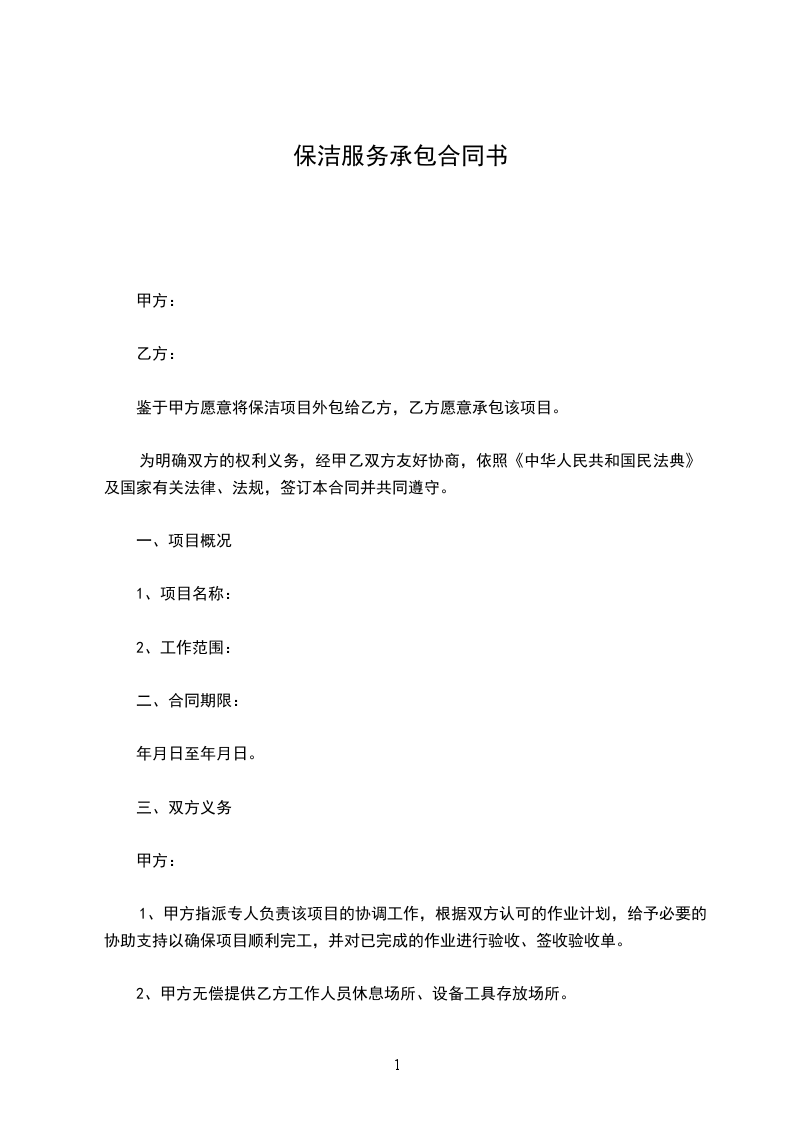 鉴于甲方愿意将保洁项目外包给乙方,乙方愿意承包该项目。