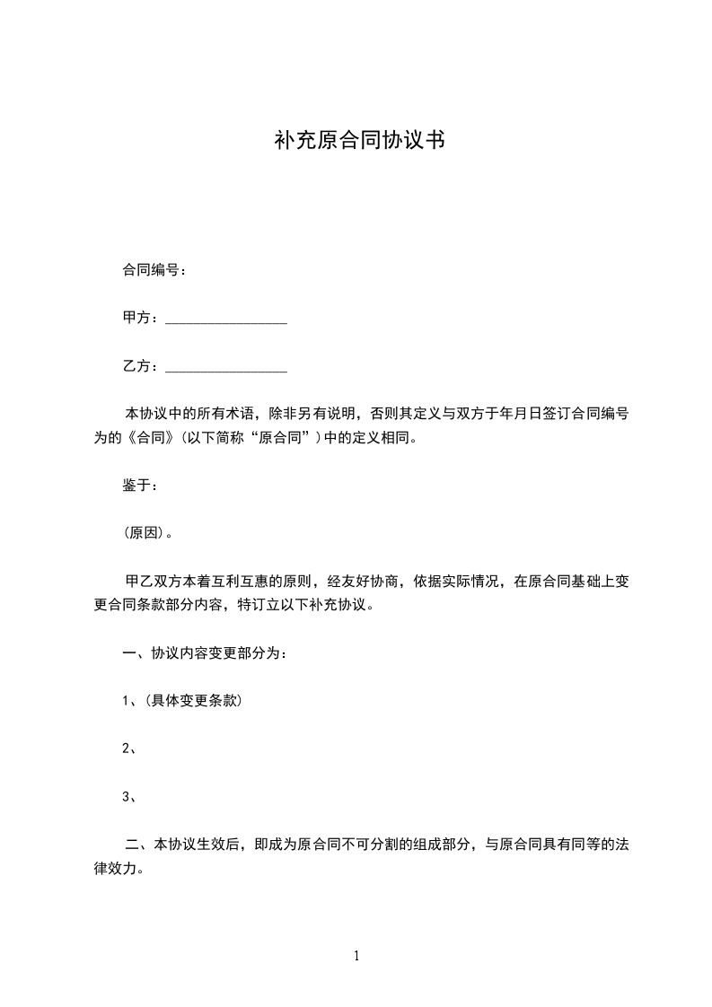 甲乙双方本着互利互惠的原则,经友好协商,依据实际情况,在原合同基础上变更合同条款部分内容,特订立以下补充协议。