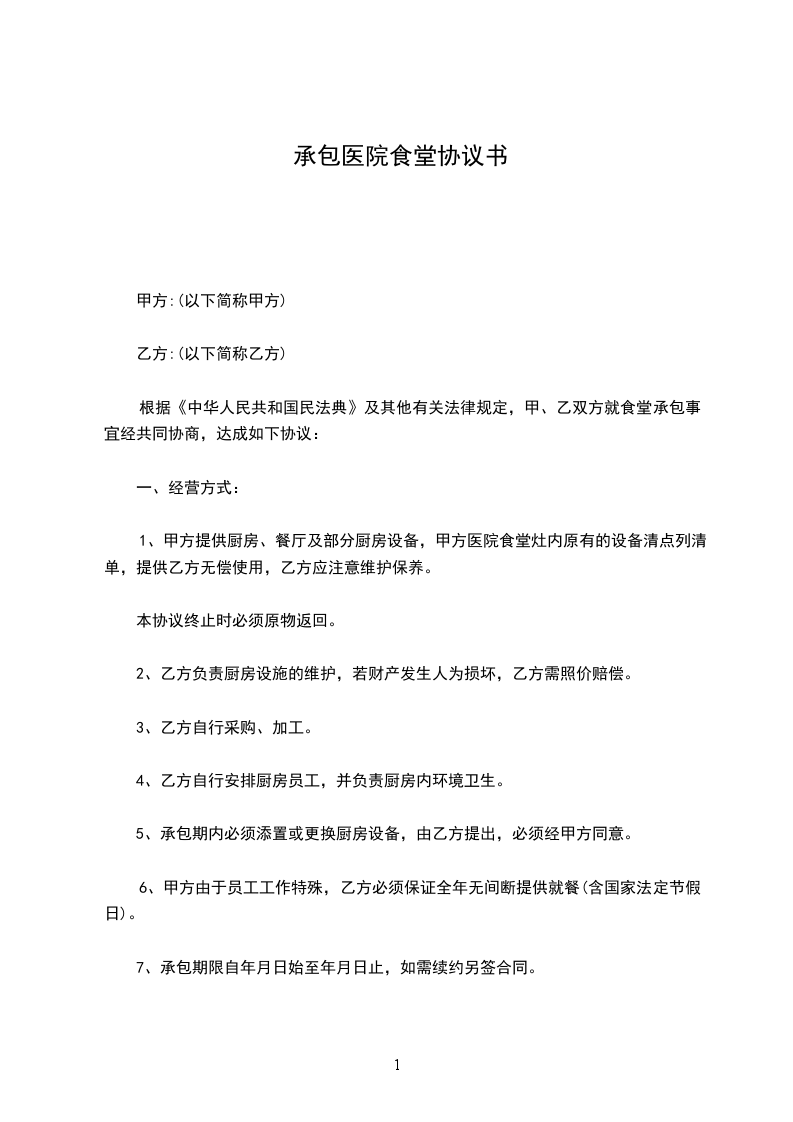 根据《中华人民共和国民法典》及其他有关法律规定,甲、乙双方就食堂承包事宜经共同协商,达成如下协议: