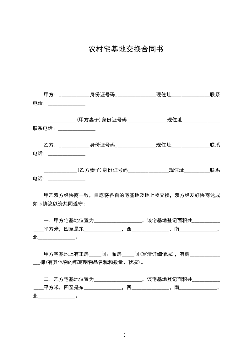 甲乙双方经协商一致,自愿将各自的宅基地及地上物交换,双方经友好协商达成如下协议以资共同遵守: