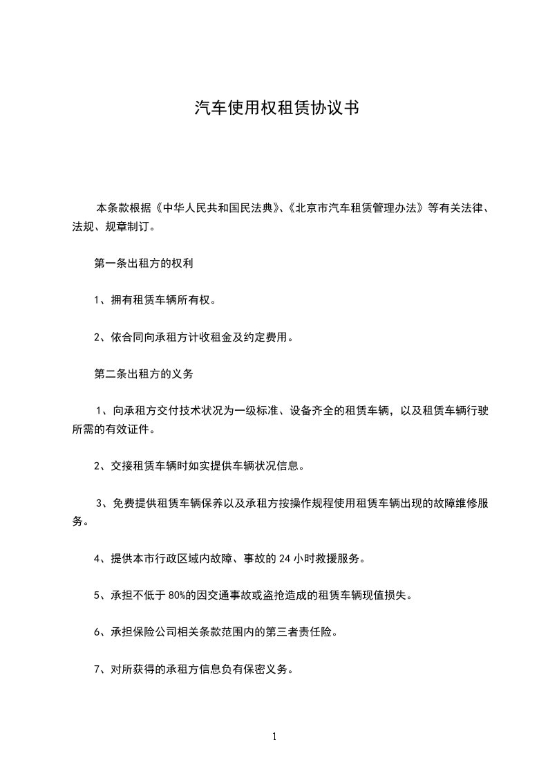 本条款根据《中华人民共和国民法典》、《北京市汽车租赁管理办法》等有关法律、法规、规章制订。