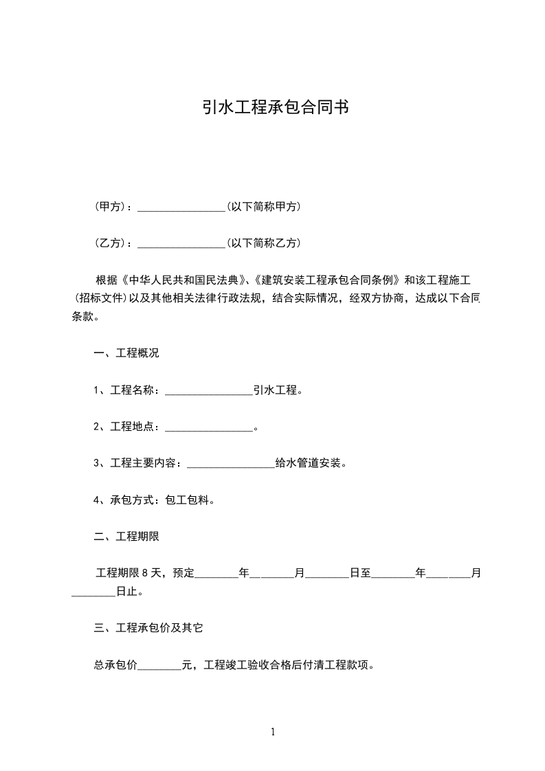 1、工程名称:________________引水工程。