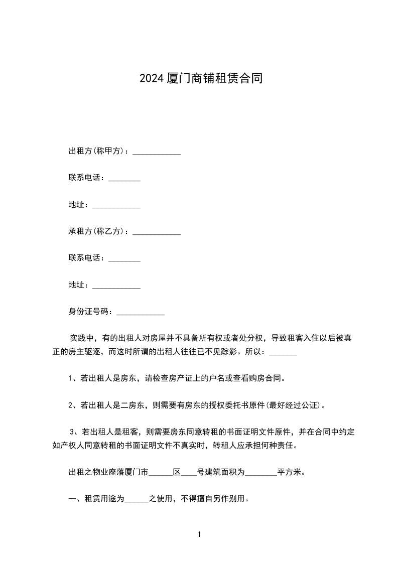 一、乙方租用甲方位于___________________________门面房一间,面积平米左右(一层),用于___________________________,门面房内附属设施有____________________________________。