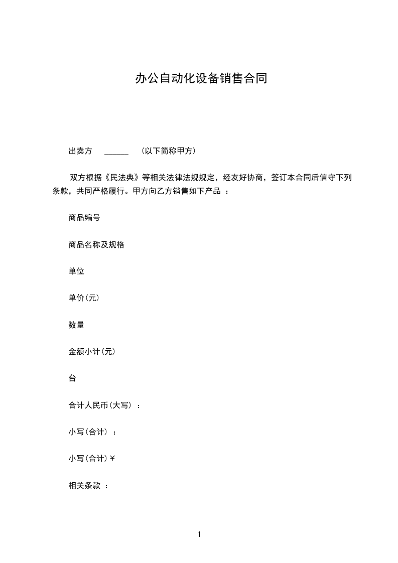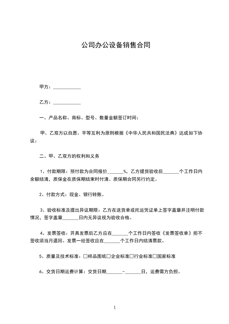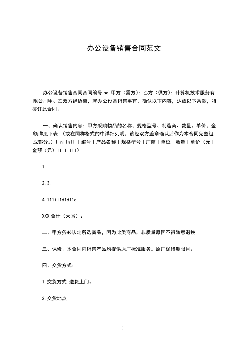 办公设备销售合同模板