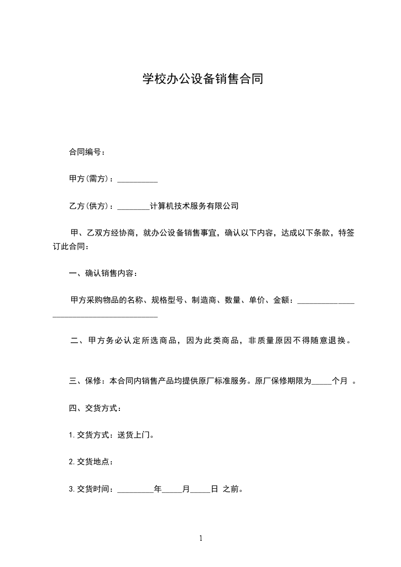 学校办公设备销售合同
