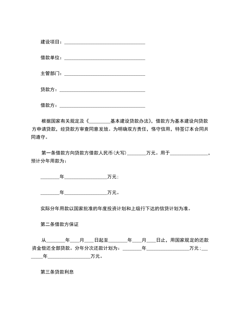 一、借款方向贷款方申请借款人民币(大写)___万元,用于___项目。借款实际发放额,在本合同规定期限内以借据为凭,并作为本合同附件。