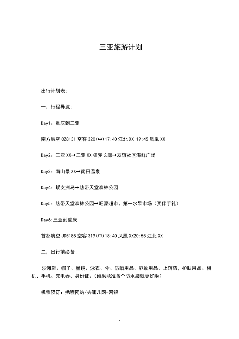 第二条 旅游的地点及每个旅游景点的时间安排