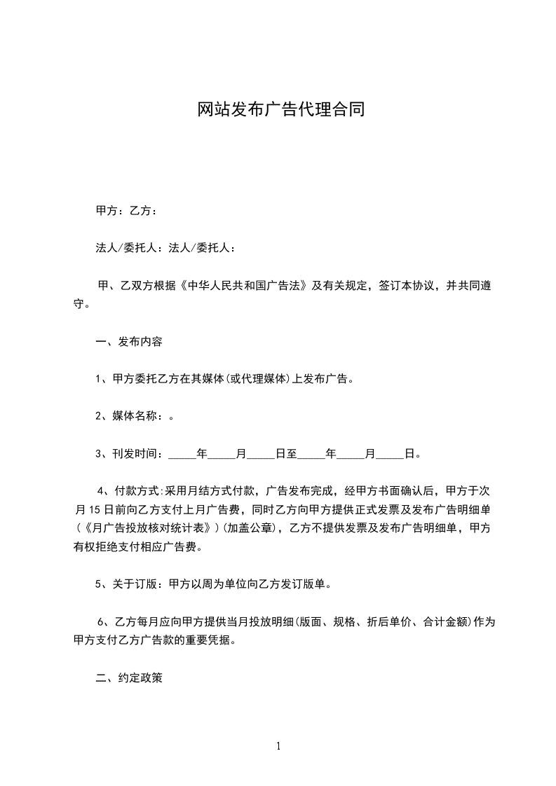 1、甲方委托乙方在其媒体(或代理媒体)上发布广告。