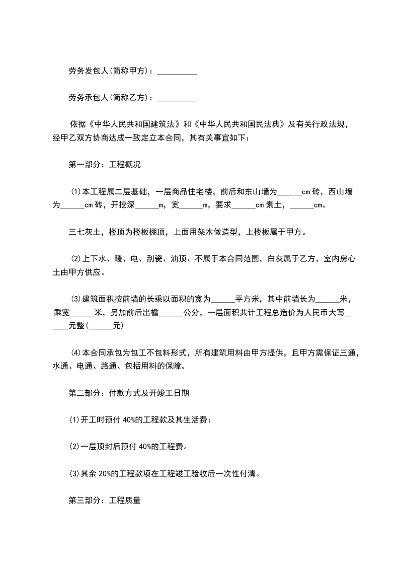 二、工程价款清包工费:元,大写: