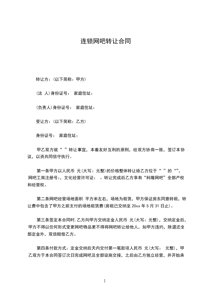 篇1连锁网吧加盟合同