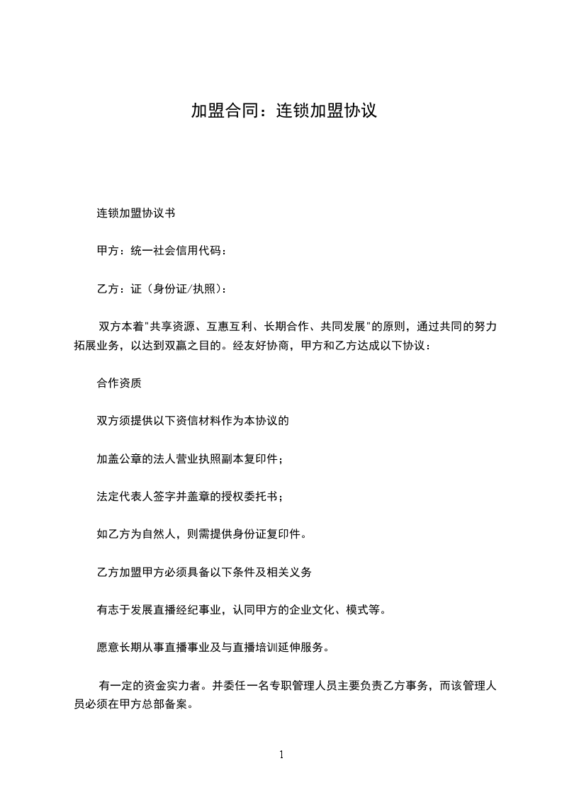 一、加盟授权
